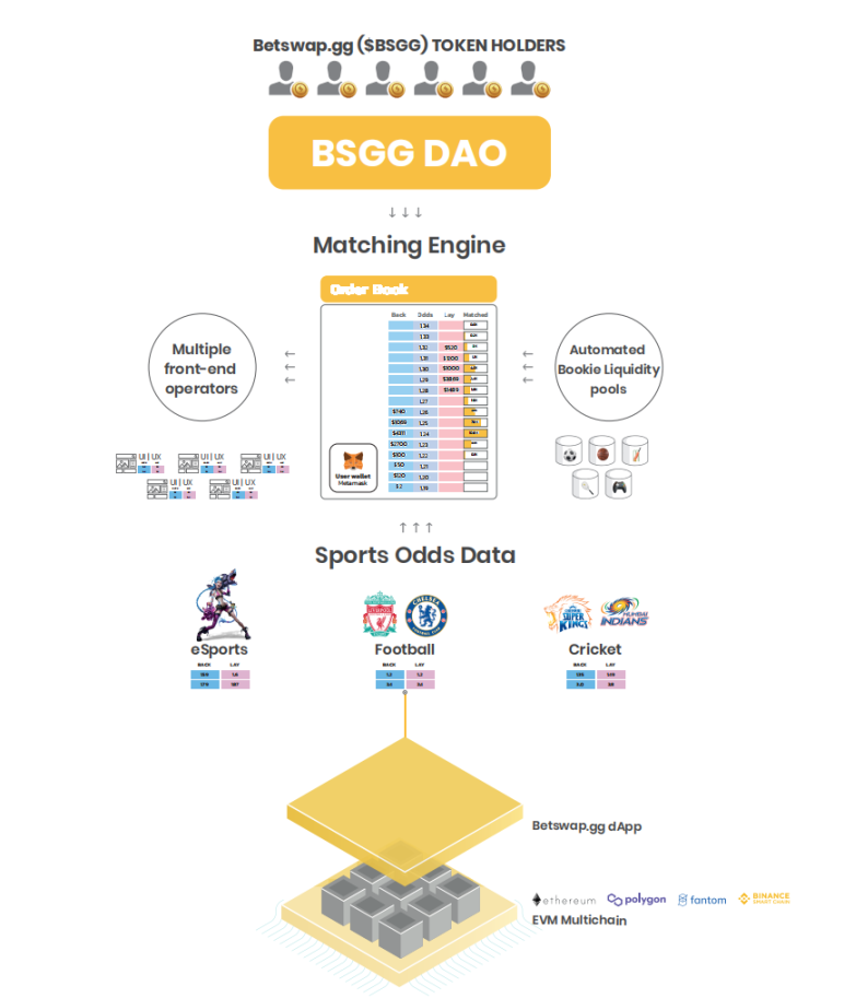 Betswap 的本质在于全球博彩社区的需求,该社区长期以来一直在努力应对博彩平台的访问受限、漫长的等待时间以及难以从银行来回转移法定货币。利用订单匹配引擎技术连接世界各地的投注者。它允许通过第三方对所有体育和电子竞技赛事进行投注,为所有重大体育赛事提供流动性。