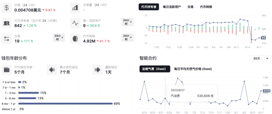3.链上数据较差,代币持有地址较少,代币持有较为集中,其余持有钱包多为小型持有者,链上交易量和新增地址增长情况不理想。