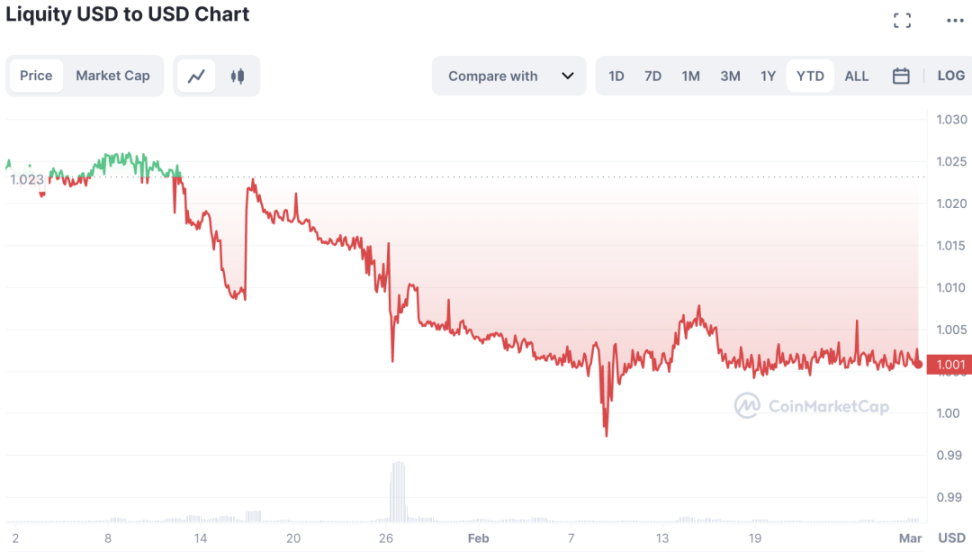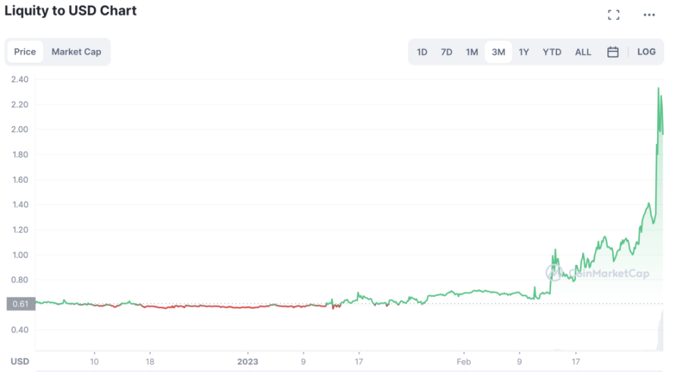 随着最近对 $usdc 和 $busd 的 FUD, liquity 的项目代币 $LQTY 突然暴力涨了一波。项目绝对是好项目,但却也并不是一个太赚钱的项目,至少对于 $LQTY 代币的持有者来说,别问我怎么知道的,挖了一年多的 $LQTY 的用户心里苦啊。