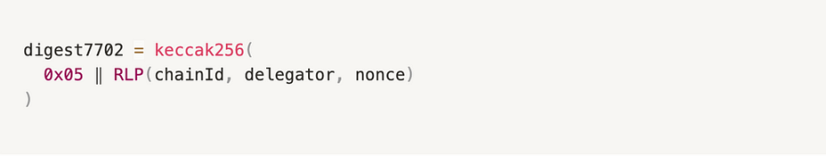 由于 eth_signTypedData_v4 固定包含 0x1901 前缀,且摘要计算过程与 7702 完全不同,因此即使构造巧妙的 domainSeparator、primaryType 和 message,也几乎不可能使得 digest712 == digest7702。