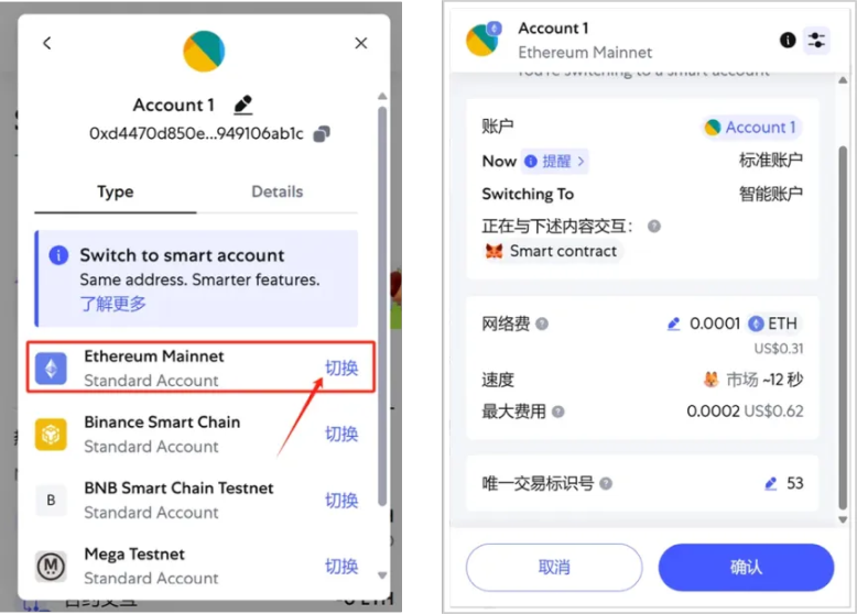 当前在 Metamask 中,将现有 EOA 升级为 7702 智能账户(Smart Account)的方式主要分为两类:主动升级与被动升级。
