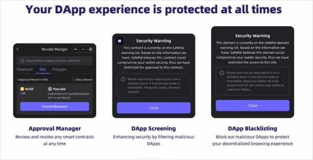 基于 SafePal 与 GoPlus 的深度合作,使用 SafePal App 访问 DApp 时,如果用户误点击了恶意 DApp 网站,会有 Goplus 的风险弹窗提醒,帮助用户及时识别风险、防范风险。