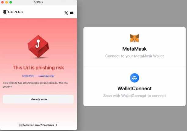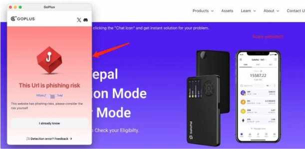 使用 GoPlus 插件也可以对仿冒官网进行有效的风险识别与提醒: