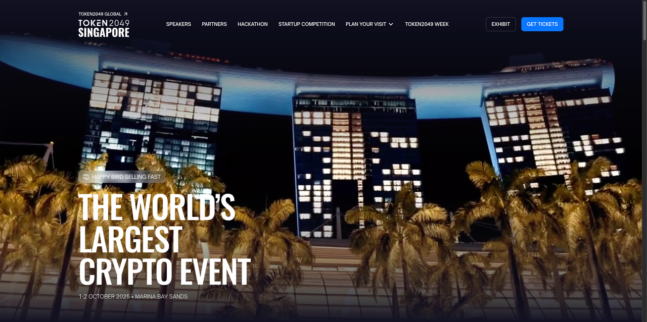 TOKEN2049 新加坡已定档 2025 年 10 月 1–2 日,地点在滨海湾金沙会展中心(Marina Bay Sands)。主会期前后还会有一整周的城市侧活动(Token2049 Week),项目方和投资人都会密集到场。