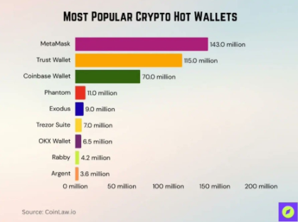 尽管市场上已经出现了更轻便的替代产品(如 Rabby),MetaMask 依旧凭借先发优势保持主导地位,目前活跃用户超过 1.43 亿,是全球最广泛使用的加密钱包。