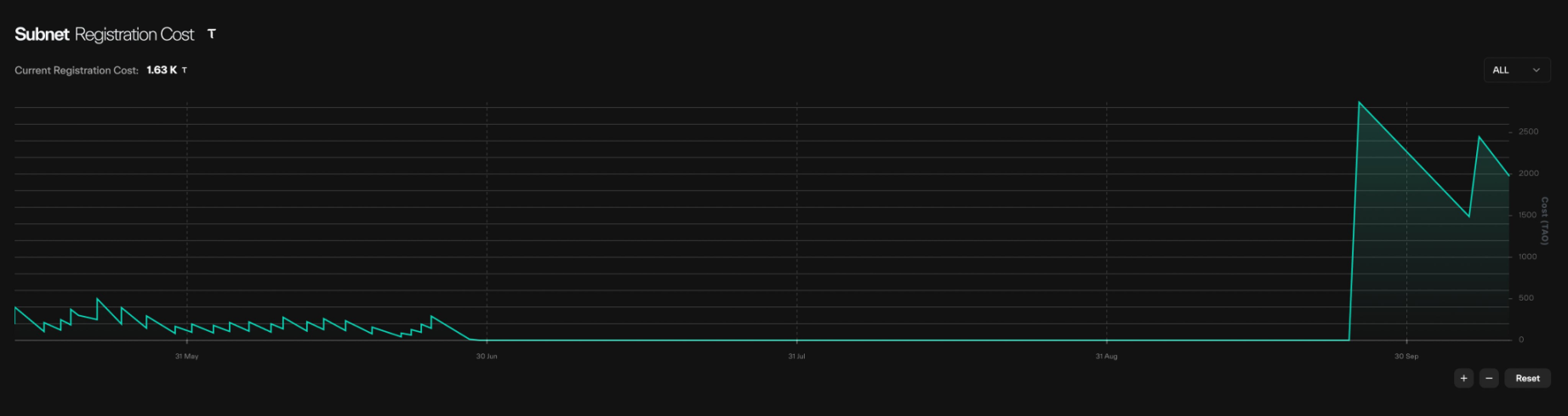 Bittensor 的整体愿景是打造一个神经互联网。过去四年间,Bittensor 建立了一个忠实的社区,汇聚了 DCG 等顶级风投、Sami Kasab 等加密研究人员,以及许多每天都在努力推动这一愿景的天才。他们创作内容、做播客、开发产品,并且正在掀起一场运动。Bittensor 还构建了一个子网生态系统,目前约有 126 个子网处于活跃状态。当前子网的成本约为 1600 个 TAO(64 万美元),这个成本是动态的,会根据新子网注册的频率不断变化。在暂停了几个月之后,新的子网注册现已重新开放。