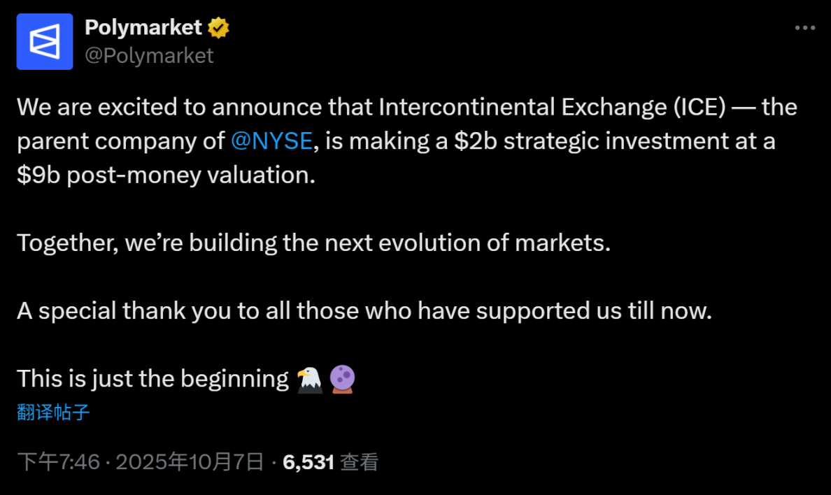 纽交所母公司出手,20 亿美元融资,近百亿美元估值,彻底将预测市场推到聚光灯下。