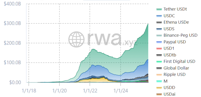 非美元稳定币的整体格局正在显现出典型的“全局弱、局部强”特征。回顾 2018 年,其市占份额一度接近 49%,几乎与美元稳定币形成均势。然而短短数年间,这一份额已经跌落至不足 1% 的“零点几个点”,行业数据平台 RWA.xyz 甚至给出 0.18% 的极端低谷估算。欧元稳定币成为唯一在绝对规模上有可见度的存在,总市值约 4.56 亿美元,占据非美元稳定币绝大多数空间,而亚洲、澳洲等其他货币稳定币仍处于起步或试点阶段。与此同时,欧盟资本市场行业协会 AFME 在 9 月的报告中指出,美元稳定币份额已经高达 99.5%,意味着全球链上流动性几乎完全系于美元单点。这种过度集中构成结构性风险,一旦美国本土出现极端监管、技术或信用冲击,外溢效应将通过结算层迅速传导至全球市场。因此,推动非美元稳定币并非单纯的商业竞争,而是维护系统韧性与货币主权的战略必然。