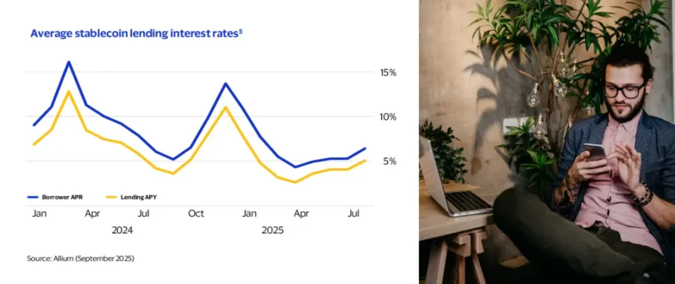 当与稳定币结合时,这些协议能够以自动执行、接近即时结算,以及无国界资金流动的方式实现新的借贷模式——本质上打造了一个永不关门的全球信贷市场。