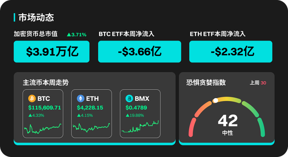 据 BitMart 10 月 27 日市场行情报告,过去一周加密货币总市值为 3.91 万亿,较上周上涨了 3.71%。