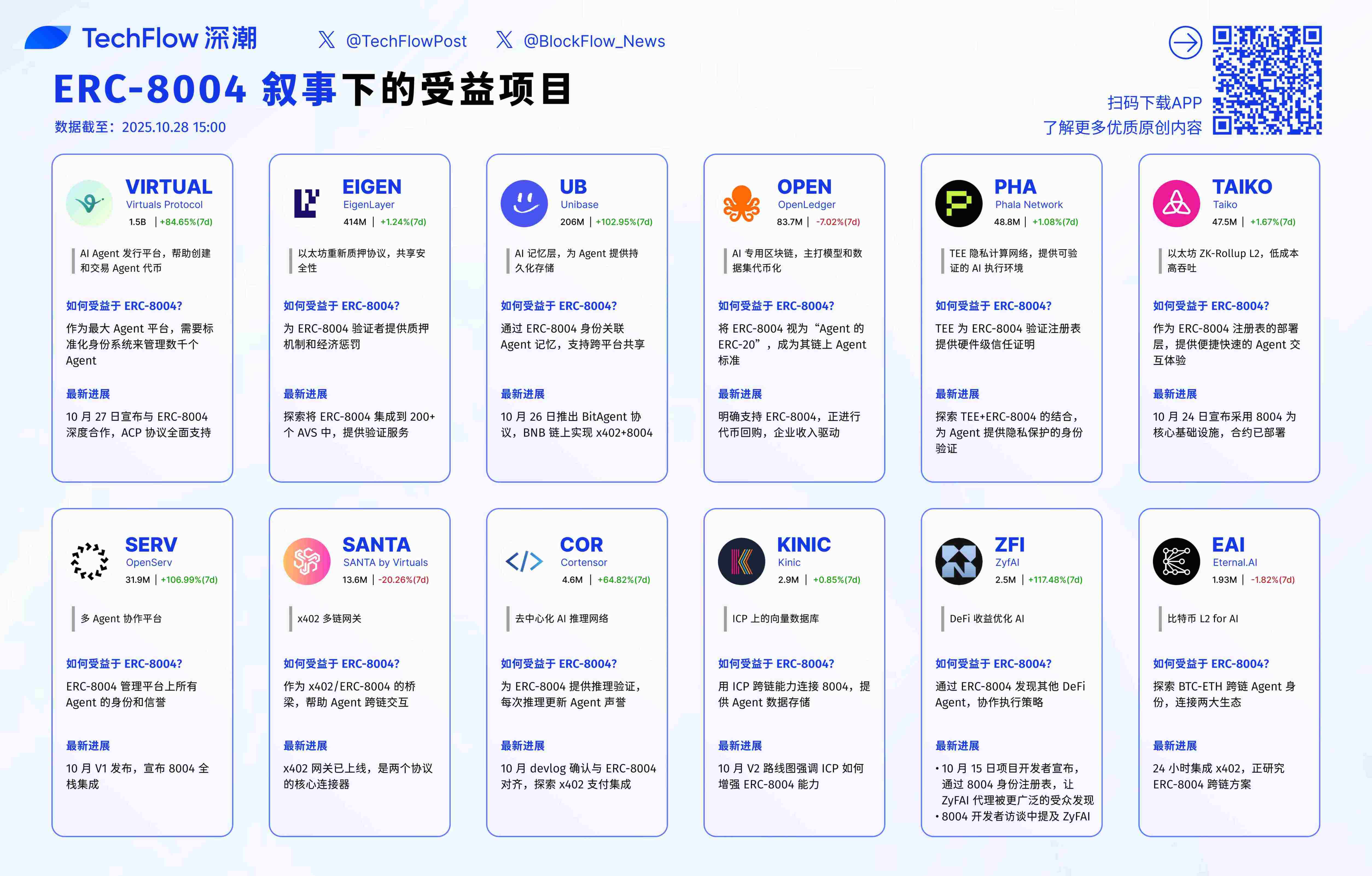 x402 爆发时,最先涨的是 PING 这样的支付代币。但 ERC-8004 的机会分布更广,从基础设施到应用,每一层都有自己的逻辑。理解这个逻辑,比追逐单个项目更重要。
