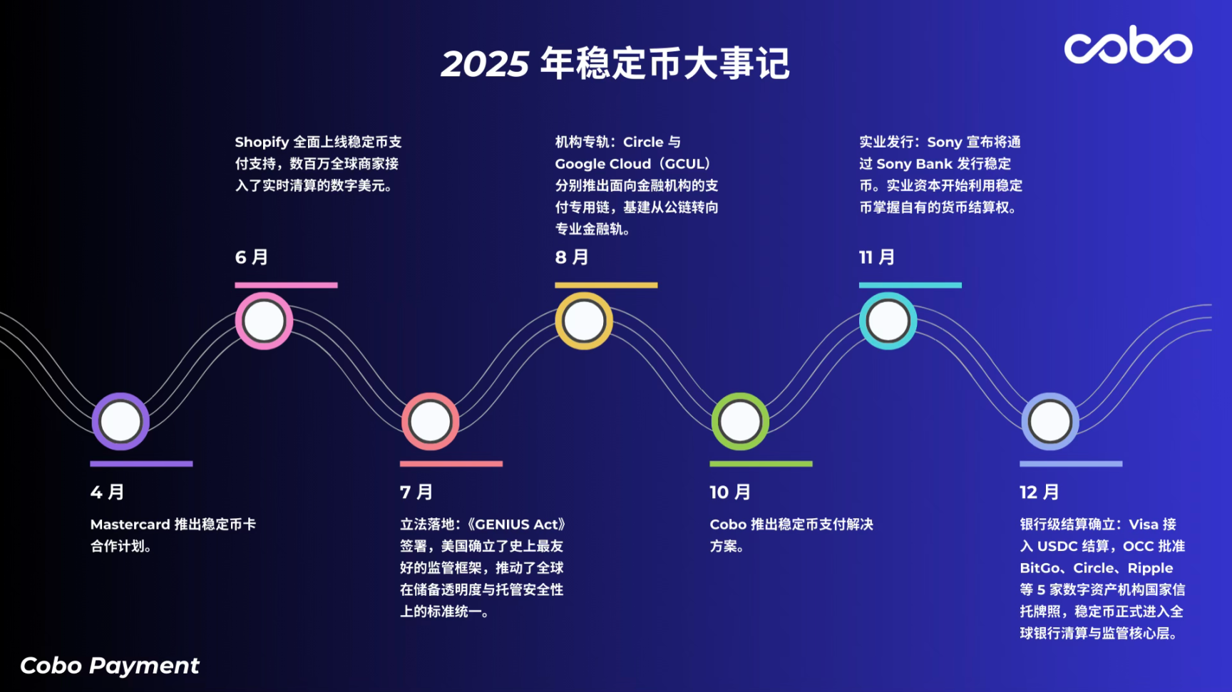 从中长期看,链上反洗钱数据与链下真实身份将实现全量映射,稳定币基础设施也将走向专业化分工。以 Cobo 为例,通过将风控、合规与清算能力封装为标准化 API,企业无需直接处理链上数据或触碰私钥,即可在后台完成结算与合规映射。当用户感知的只是资金到账,而验证与追责已在后台完成,稳定币才真正从前台工具进化为金融级后台基础设施。