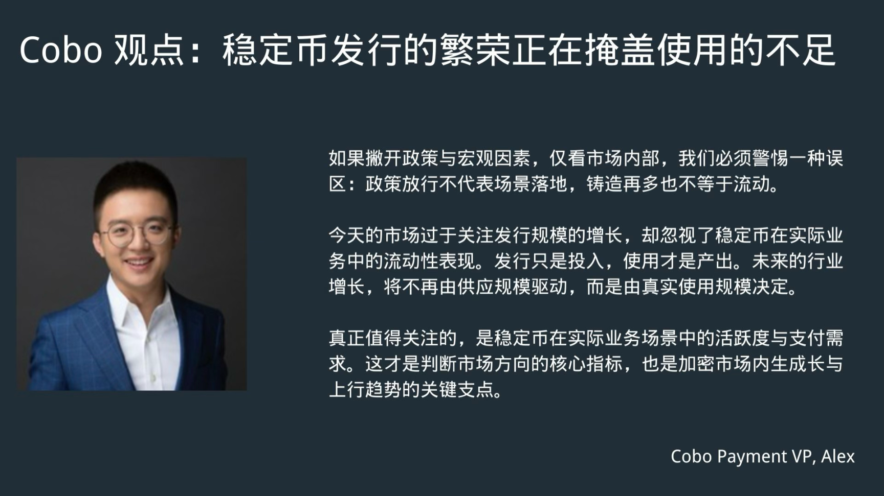 正如 Cobo Payments VP Alex 所指出的,行业正在陷入一种供给侧的幻觉: