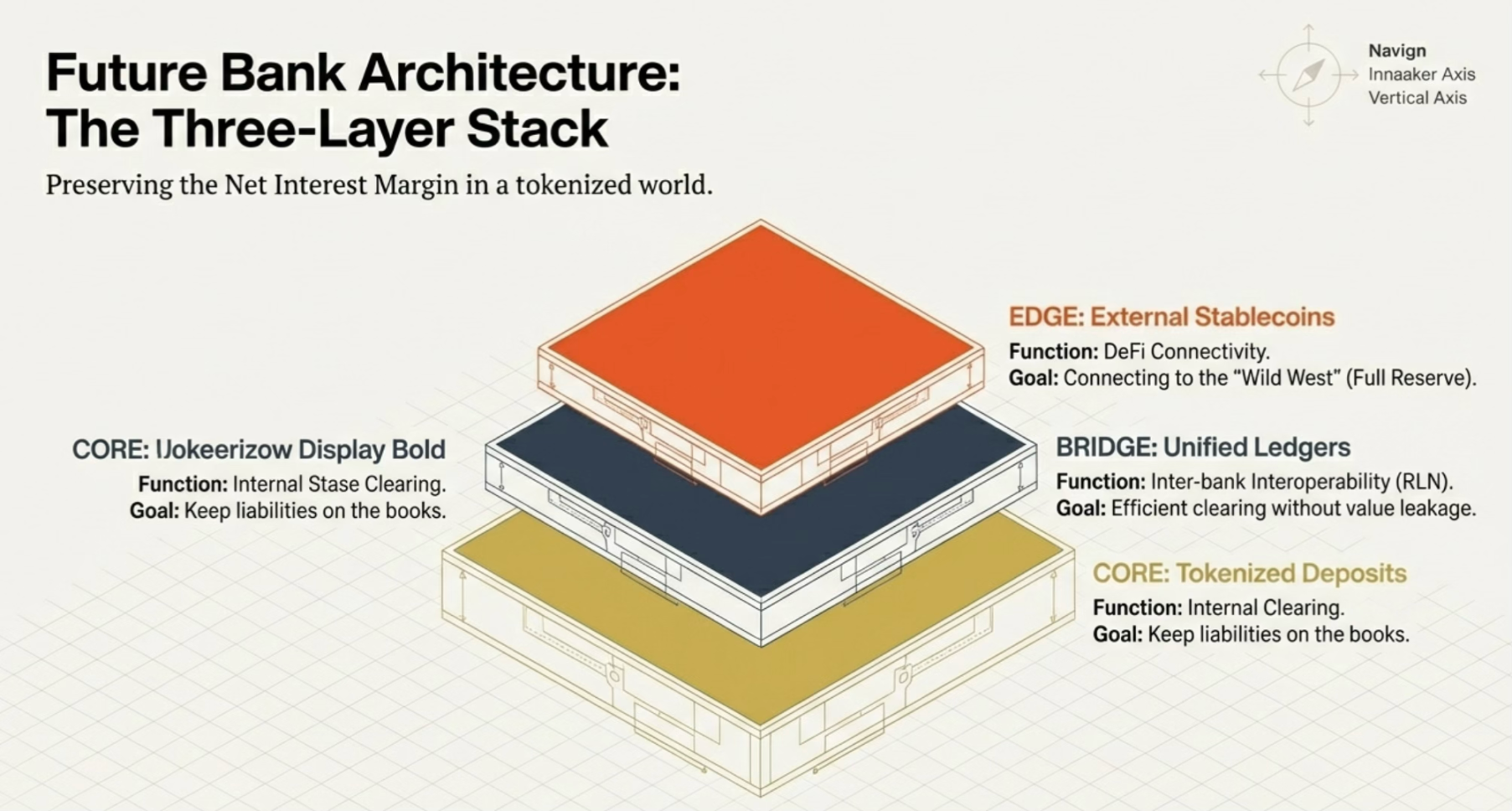 未来的银行体系将演化为三层结构:内核用代币化存款做清算,中间用统一账本做互通,外围用稳定币做连接。