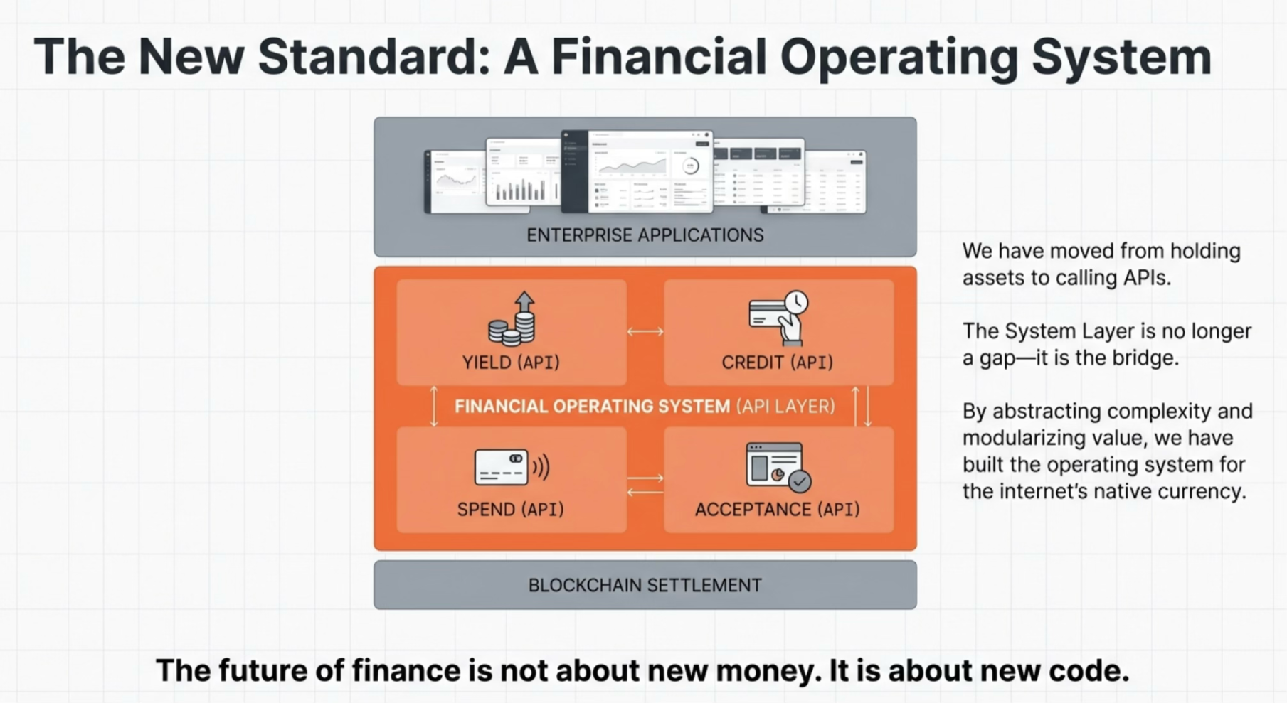 这开启了全新的阶段,一个以信用化、自动化和网络化为特征的阶段由此展开。基于这些 API 构建的二级产品,会像 SaaS 软件一样,用代码自动接管全球资金流,通过把金融逻辑直接写进了系统底层,这将重塑资金被配置、调度和使用的方式。