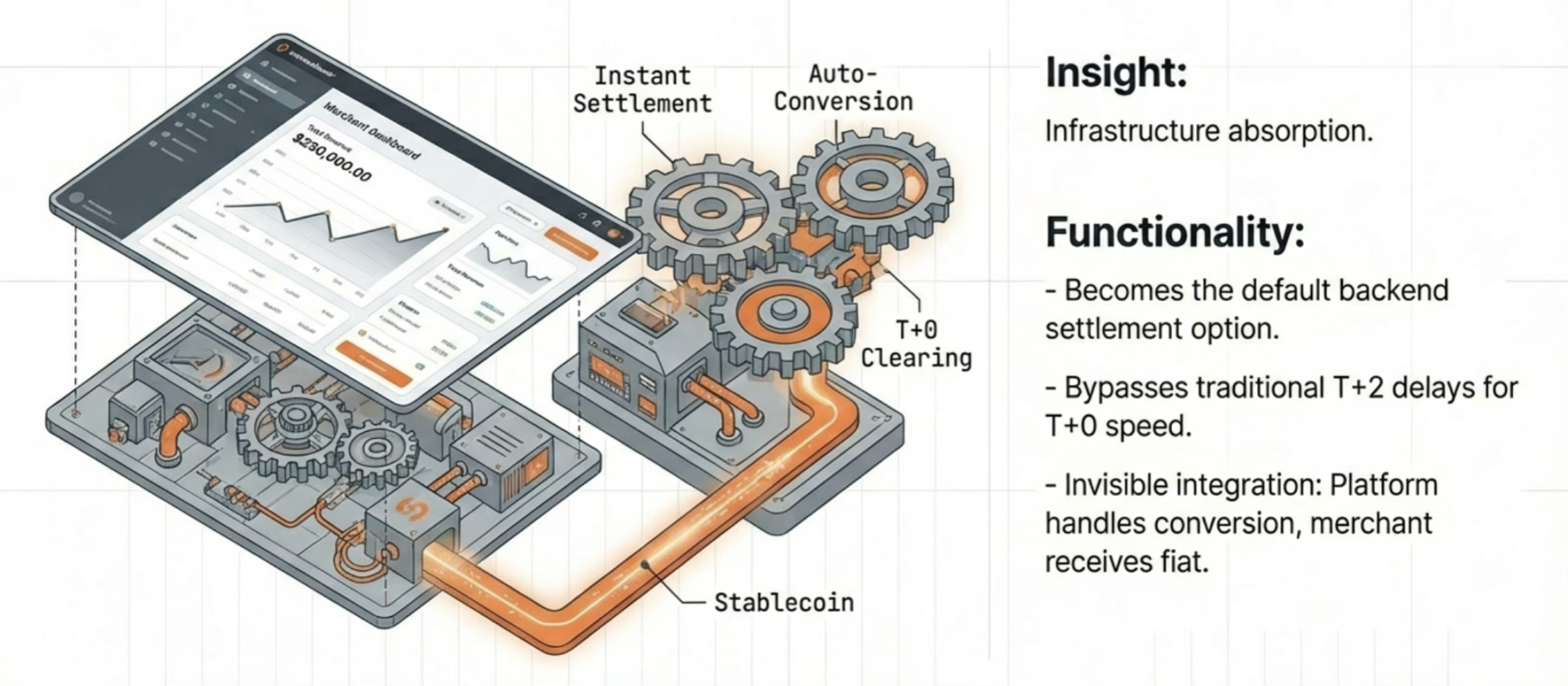 面对价值链被压缩的风险,Visa 和 Mastercard 通过前后端分离的架构,两大巨头成功将链上流动性无感地纳入了既有网络。前端继续沿用卡网络的受理与用户体验,后台引入更高效的链上账本以降低清算摩擦与资本占用。这样既避免商户侧的大规模改造,同时把链上流动性纳入既有网络之中。