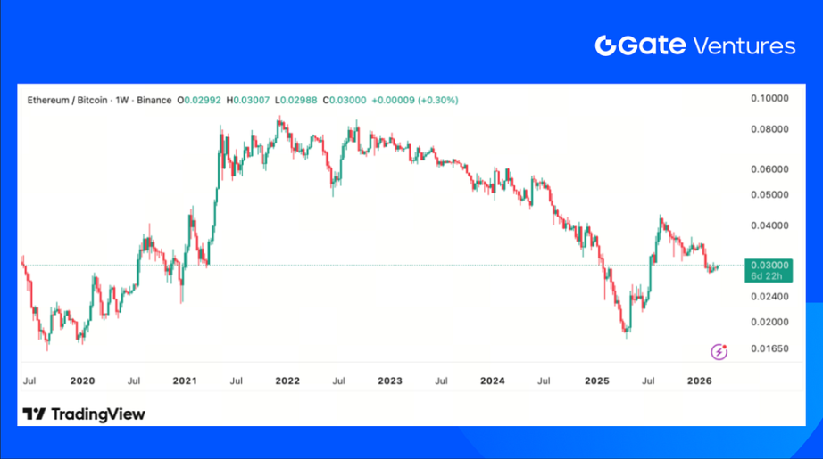 The ETH/BTC ratio also climbed 1.87% to 0.03, suggesting relative strength in ETH. Overall market sentiment improved modestly, with the Fear & Greed Index rising from 8 last week to 23 this week, though it remains firmly in extreme fear territory.(6)