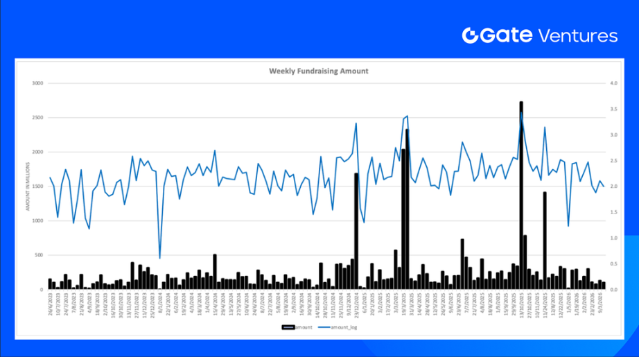 Total weekly fundraising declined to $100.3M for the third week of Mar-2026, a decrease of 21% compared to the week prior.