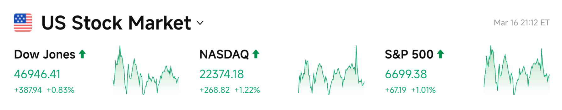 英伟达(NVDA):涨 1.65% 至约 183 美元,全栈 AI 演讲提振市场信心。 总体涨跌核心原因:油价回落缓解通胀担忧,科技股集体走强结束连跌。
